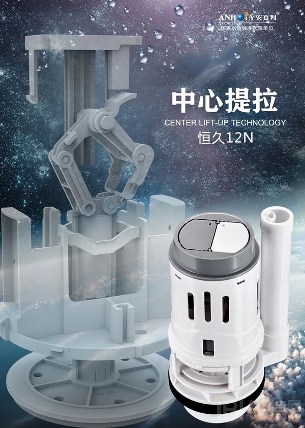 大会现场,安百利科技行业首创“中心提拉”排水阀闪耀亮相。“中心提拉”是安百利科技获得发明专利的一项应用于马桶水件排水阀的技术,其创新特点是排水阀以中心提拉代替传统侧拉,通过中心平衡减少使用过程中的摩擦,达到用恒久12N的压力按下冲水按钮;中心提拉技术确保每次排水的稳定,同一刻度水位稳定性正负不超过1毫米,性能稳定;由于工作部件不易磨损,从而有效延长产品的使用寿命。